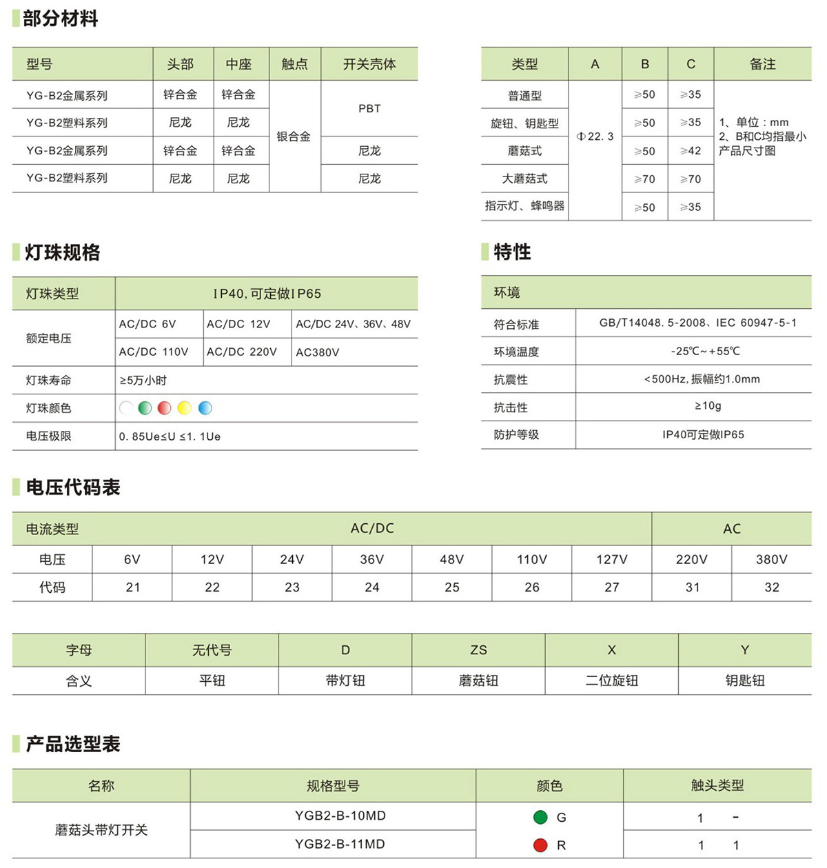 YGB2蘑菇头带灯开关