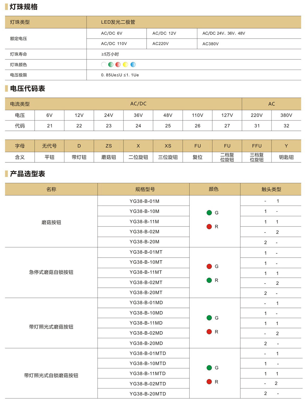 YG38蘑菇按钮 急停式蘑菇自锁按钮 带灯照光式蘑菇按钮