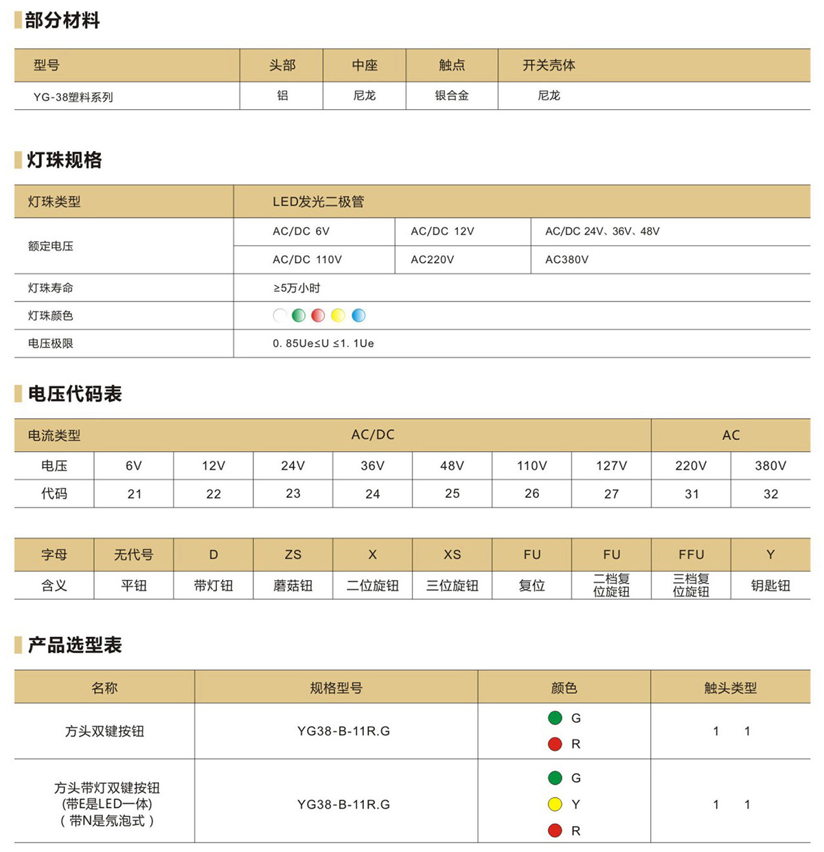 YG38方头带灯双键按钮