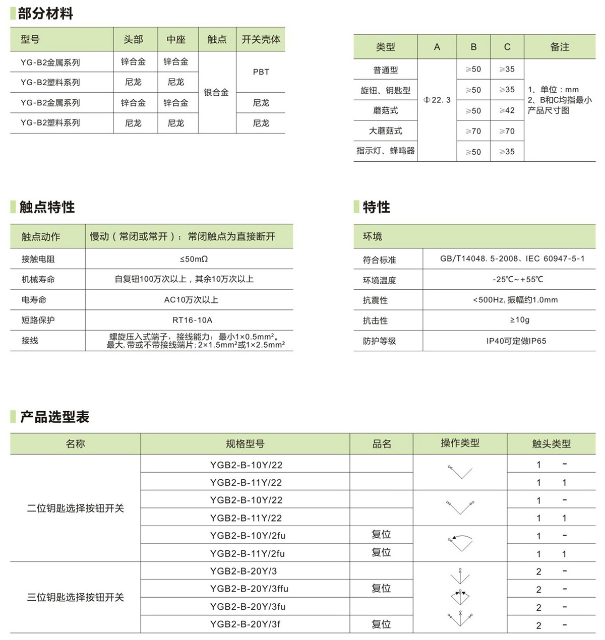 YGB2带钥匙选择按钮开关